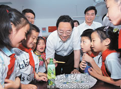 6月1日,武漢市武昌區(qū)為民小學(xué)。兩棵高大的榆樹(shù)在小小的院子灑滿(mǎn)了濃陰,一群孩子活蹦亂跳玩著游戲。省委書(shū)記俞正聲滿(mǎn)面春風(fēng)地來(lái)到了孩子們中間。