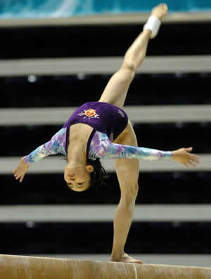 新華社照片,伊茲密爾,2005年8月15日,體操――中國體操隊(duì)再添兩金 8月15日,中國選手范曄在比賽中。當(dāng)日,在第二十三屆大運(yùn)會(huì)女子體操平衡木比賽中,范曄以9.200分的成績獲得銀牌,她的隊(duì)友張楠以9.487分的成績奪得冠軍。