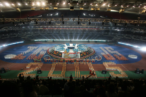 開幕式上進(jìn)行了大型文體表演《時代交響》。