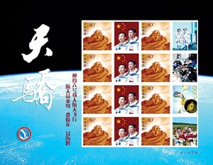 神六郵票今天印刷 8枚版式4張為費(fèi)聶合影(圖)