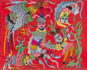 抗戰(zhàn)時期,日軍侵占武漢,漢口繡花街被燒毀,漢繡日趨凋零,技藝幾近失傳。新中國建立以后,漢繡才重放光華。80年代,漢繡產(chǎn)品已由原來的民用小繡品和少量古典戲劇繡服發(fā)展到帳簾、披風(fēng)、被面、枕套、服裝、大幅、中堂、條屏、折頁、搖件和屏風(fēng)等十多個品種。