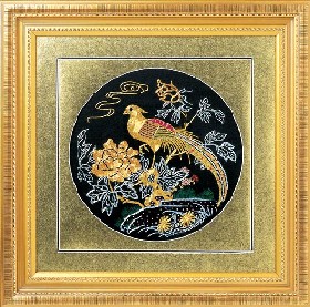 京繡又稱宮繡,明清時期開始大為興盛,多用于宮廷裝飾、服飾,用料講究、技術(shù)精湛、格調(diào)風(fēng)雅,民間高檔的宮繡大都與皇宮有著千絲萬縷的聯(lián)系。京繡屬手工刺繡,所以在今天機繡發(fā)達(dá)的時候,為區(qū)別于機繡又名“手繡”。京繡在解放后,逐漸形成了自己鮮明的藝術(shù)特點與風(fēng)格,其選料精當(dāng)貴重,針工巧妙得體,色彩絢麗豪華,格調(diào)高雅。其中最好為針工中的“平金打籽”繡。這種繡,是以真金捻線盤成圖案,或結(jié)籽于其上,十分精致,華貴。