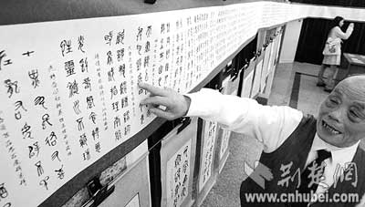“我的作品義賣后,用來幫助貧困地區(qū)的孩子上學(xué)。”10日,我省老年書畫協(xié)會會員、70歲的鄧志幫老人在他的百米長卷作品展上表露心聲。