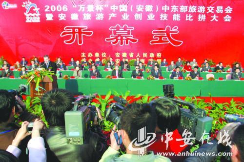旅游盛會迎嘉賓,皖風徽韻放異彩。12月1日,由省政府主辦、省旅游局承辦的“2006中國(安徽)中東部旅游交易會暨安徽旅游產(chǎn)業(yè)創(chuàng)業(yè)技能比拼大會”在合肥國際會展中心隆重開幕。省委書記郭金龍宣布大會開幕,省長王金山在開幕式上致辭。副省長文海英主持開幕式。