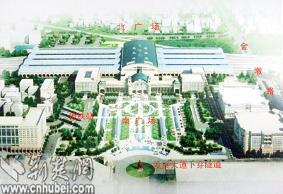 漢口火車站將建設(shè)南北兩個廣場。面積分別為9.24公頃、3公頃。配套道路包括,打通車站東側(cè)金墩路,下穿鐵路線后連通北廣場,向北延伸至常青一路、紅旗渠路等;發(fā)展大道改為下穿隧道;西側(cè)建設(shè)下穿鐵路的銀墩路,連通北廣場。站前廣場西側(cè)布置地鐵2號線漢口火車站站,以及公交樞紐站等。據(jù)估算,整個市政配套工程總投資約14億元,計劃2008年6月完成。