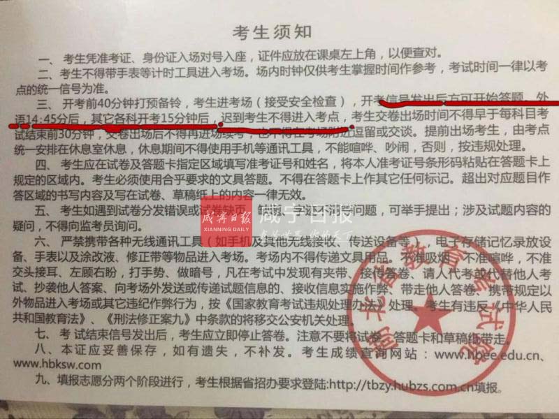 不過,經過記者核實,和網傳事實有所出入的是,該考生并非咸寧高中考生,而是紅旗路中學的一名考生。