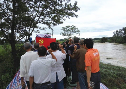 新店鎮(zhèn)蒲首山村黨支部在堤壩上舉行重溫入黨誓詞宣誓儀式