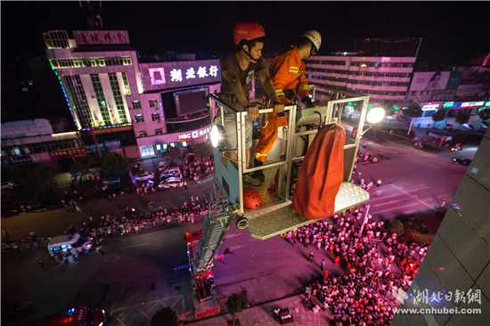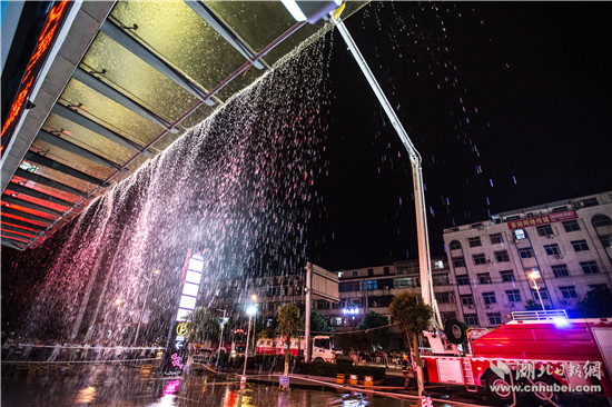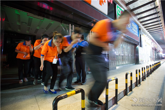 晚8時,通城縣建筑體量最大的城市綜合體——三合中百購物廣場內(nèi),燈火通明,熙熙攘攘。忽然,警鈴大作。廣場因電線短路發(fā)生“火災”,火勢迅速蔓延,大量人員被困。警情就是命令。廣場內(nèi)4個微型消防站立即按照預案,疏散廣場內(nèi)部人員,并啟動固定消防設施,阻止火勢蔓延。
