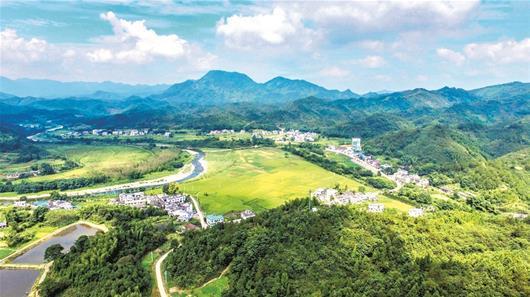 圖為:青山綠水中的崇陽(yáng)金塘鎮(zhèn)畈上村