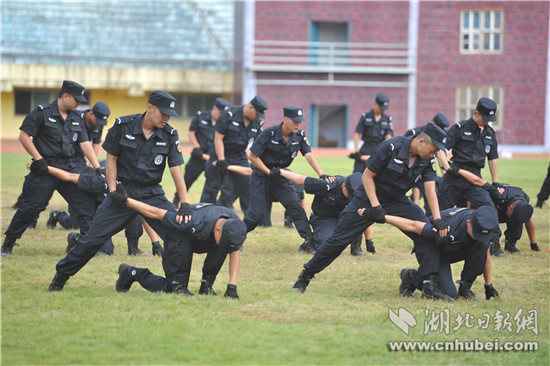 在警務(wù)技能演練之后,武警支隊(duì)、特警支隊(duì)和赤壁市公安局等單位60名民警,進(jìn)行了反暴恐合成作戰(zhàn)演練:公交車上制服歹徒、排爆員移除可疑爆炸物、狙擊手制服恐怖分子、談判專家現(xiàn)場(chǎng)喊話確保人質(zhì)安全……短短10多分鐘,各警種精誠(chéng)合作,成功處置一起暴恐事件。隨后,民警和消防官兵又先后進(jìn)行了重大交通火災(zāi)事故救援處置、突發(fā)事件應(yīng)急處置綜合演練。