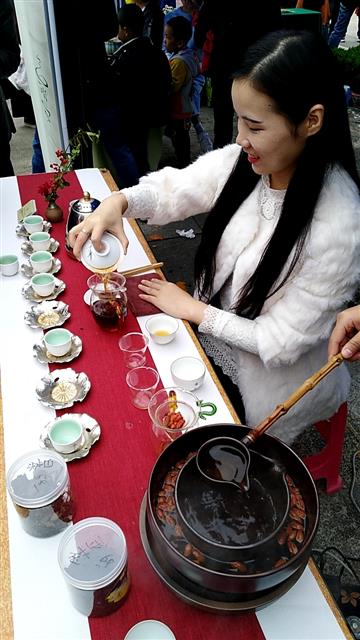 在咸寧茶友會成員逸思園生態(tài)茶葉展臺前,茶客絡(luò)繹不絕。大家品嘗瑤山紅茶、桃花尖白茶、泉谷毫峰綠茶等產(chǎn)品,相互交流品茶心得?!扒啻u茶膏,這還是第一次見到?!痹谙虒幐咝聟^(qū)溫泉茗樂堂茶樓展臺前,品嘗秘制的青磚茶膏后,不少老茶客對其濃郁的藥香氣和明顯的解酒功效贊不絕口!