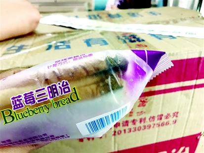 在該校三樓,記者看到了一袋發(fā)霉的面包,包裝上寫(xiě)著“藍(lán)莓三明治”,生產(chǎn)日期是2018年5月14日,保質(zhì)期180天,生產(chǎn)廠家是“湘潭鄭福記食品有限公司”。這袋面包有三片,其中一角已經(jīng)發(fā)霉變黑。