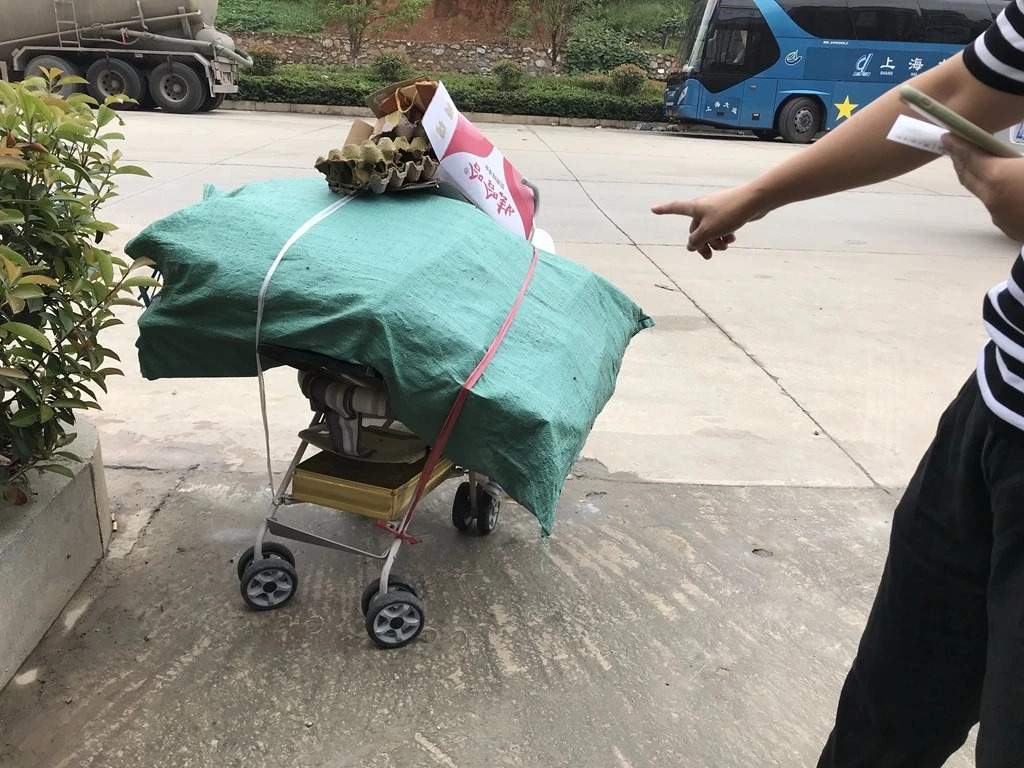 一輛兒童車上裝滿了礦泉水瓶、膠壺等廢品,停放在興業(yè)苑小區(qū)外的花壇邊,這輛裝著廢品的兒童車就是被惡犬咬傷的婆婆的。