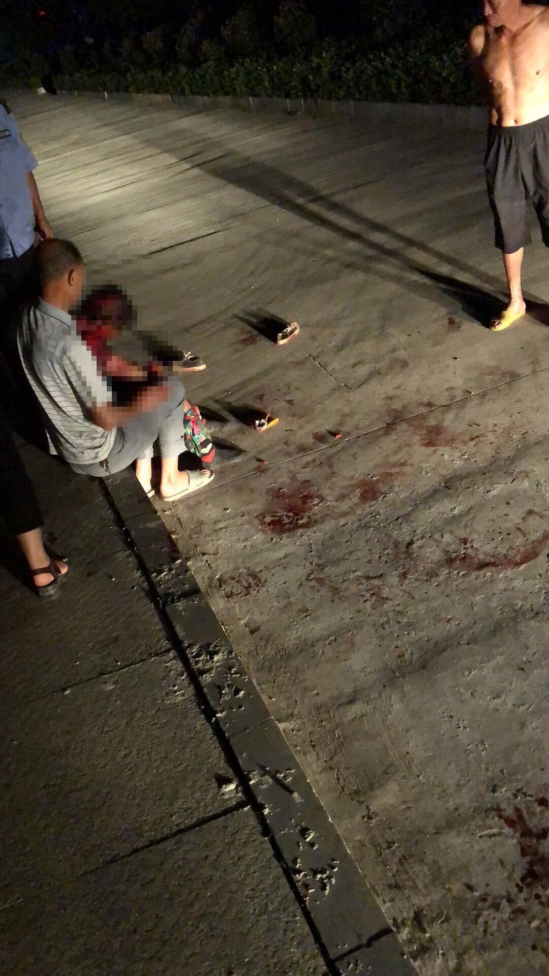 大家將太婆扶起來坐在人行道上,等待120救援。