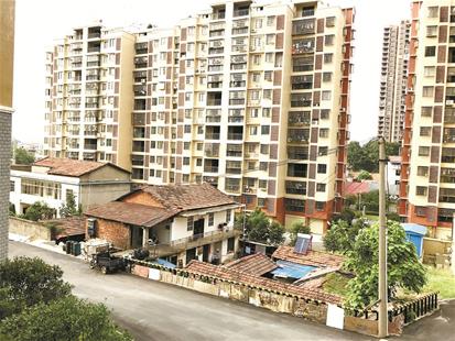 圖為養(yǎng)豬場(chǎng)被居民樓包圍