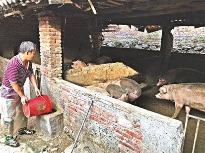 圖為養(yǎng)豬戶(hù)張某喂豬