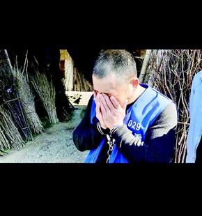 圖為:17年后,余明梁指認(rèn)殺害未婚妻的老屋時掩面而泣