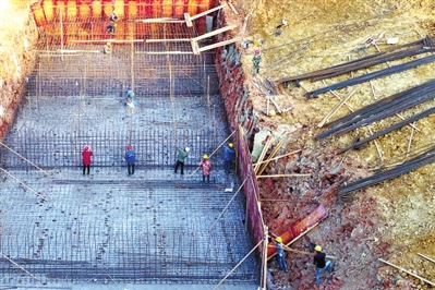13日,咸安區(qū)向陽湖鎮(zhèn)北嶺村,施工人員在進(jìn)行兩湖連通工程護(hù)坡和穿G351國道箱涵的施工。
