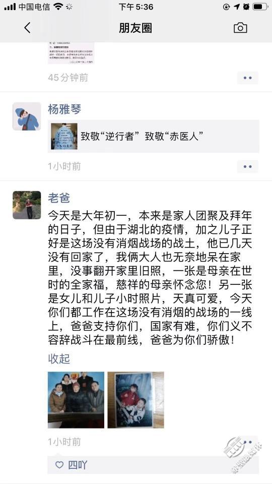 “國家有難,你們義不容辭戰(zhàn)斗在最前線,爸爸為你們驕傲,爸爸支持你們?!边@是市人民醫(yī)院呼吸內(nèi)科住院醫(yī)師姚威的爸爸發(fā)的朋友圈內(nèi)容。這位爸爸也和大家一樣,既擔心兒子的安危,卻也為兒子感到驕傲和自豪。