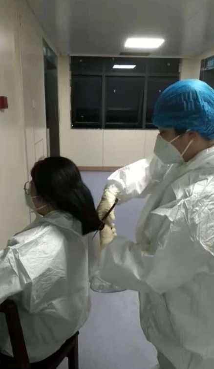 “姐姐,幫我把頭發(fā)剪了吧。工作起來要方便些!” 護士覃圻在疫情面前,想到的是如何更迅速更高效地投身到工作當中去。