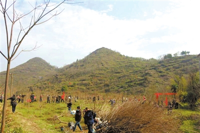 3月11日,通城縣直機關單位部分干部,戴著口罩開展義務植樹活動。