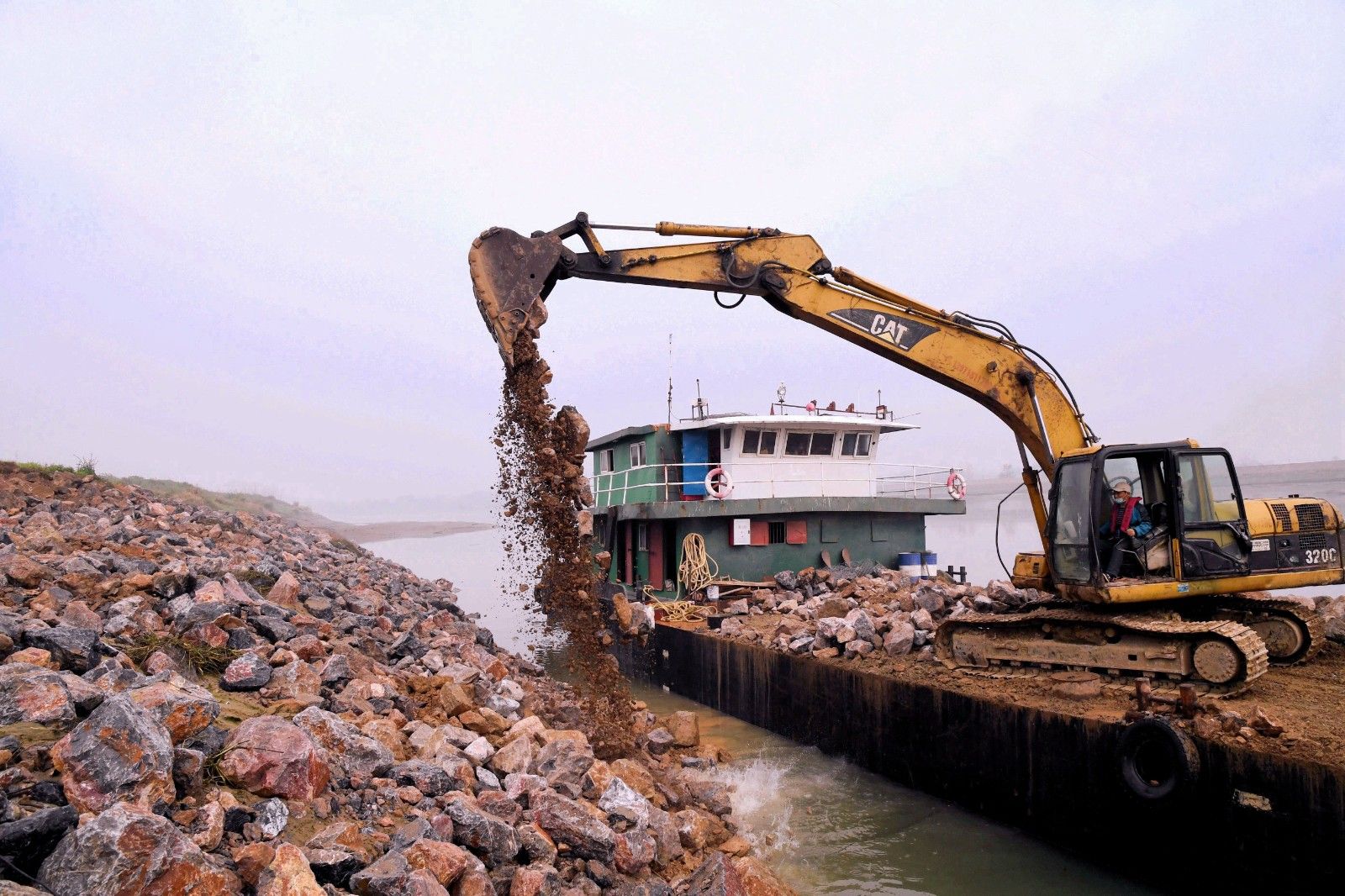 陸水河四清垸大堤全長450米,多年來的洪水侵襲致使河床下沉,堤岸崩裂。對此,赤壁市制訂了堤岸拋石護腳整治規(guī)劃。隨著疫情逐漸好轉,赤壁市于3月18日啟動工程維修計劃,投入大量人力物力。隨著挖掘機鐵臂的揮舞,一塊塊巨石墜落在河岸,為大堤的防洪能力再加一道保險。