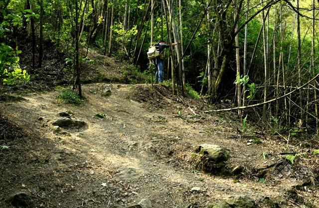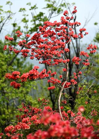 從烈士陵園旁沿著彎彎曲曲的山路,艱難地穿梭在險(xiǎn)峻的山間,探尋曾經(jīng)發(fā)生過(guò)故事的革命之地。經(jīng)過(guò)“百步十八彎”“愛(ài)泉”“云天井”,歷經(jīng)一個(gè)多小時(shí)到達(dá)“虎歇坪”,終見(jiàn)紅艷艷的杜鵑花,開(kāi)在崎嶇險(xiǎn)路兩旁。