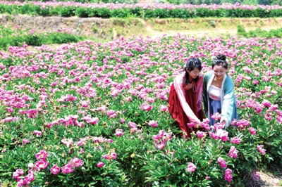 5月初,地處幕阜山綠色產(chǎn)業(yè)帶的銅鐘鄉(xiāng)銅鐘村丫吉中藥材種植基地,150多畝芍藥花怒放吸引游人前來看花賞景。