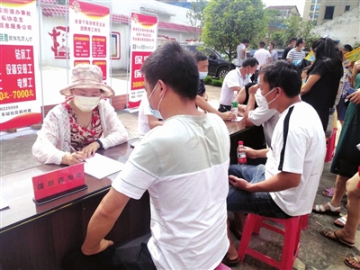 了解這一情況后,社區(qū)黨員干部立刻與咸安區(qū)永安個(gè)私協(xié)聯(lián)系,通過(guò)協(xié)會(huì)牽線搭橋,組織開展本場(chǎng)招聘會(huì)。社區(qū)居民鄭小紅原本在廣東一家電子廠打工,受疫情影響,她今年沒(méi)有外出返崗。想著孩子即將開學(xué)復(fù)課,鄭小紅當(dāng)天來(lái)到現(xiàn)場(chǎng)求職,很快,她與湖北成奧汽車服務(wù)有限公司達(dá)成初步就業(yè)意向?!耙?yàn)橐咔榈脑蛞恢贝诩依铮涂坷瞎粋€(gè)人賺錢也不容易,心里挺著急的,就急需找到一份滿意的工作。今天恰恰有這么好的機(jī)會(huì)達(dá)成我的心愿了。薪資待遇跟外面差不多,還是比較滿意的。”和鄭小紅一樣開心的還有居民周霞,周霞此前也在外地打工,通過(guò)這次招聘會(huì),周霞在家門口找到了一份新的工作,5日她就到咸安區(qū)萬(wàn)家興燈籠廠上班了。