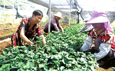 “以前家里較為貧困,現(xiàn)在家門口打工,一個(gè)月的收入就有3000元,日子越過(guò)越好了?!贝迕裎捍淙A在熊家灣草莓基地里樂(lè)呵呵地對(duì)記者說(shuō),臉上滿是幸福。