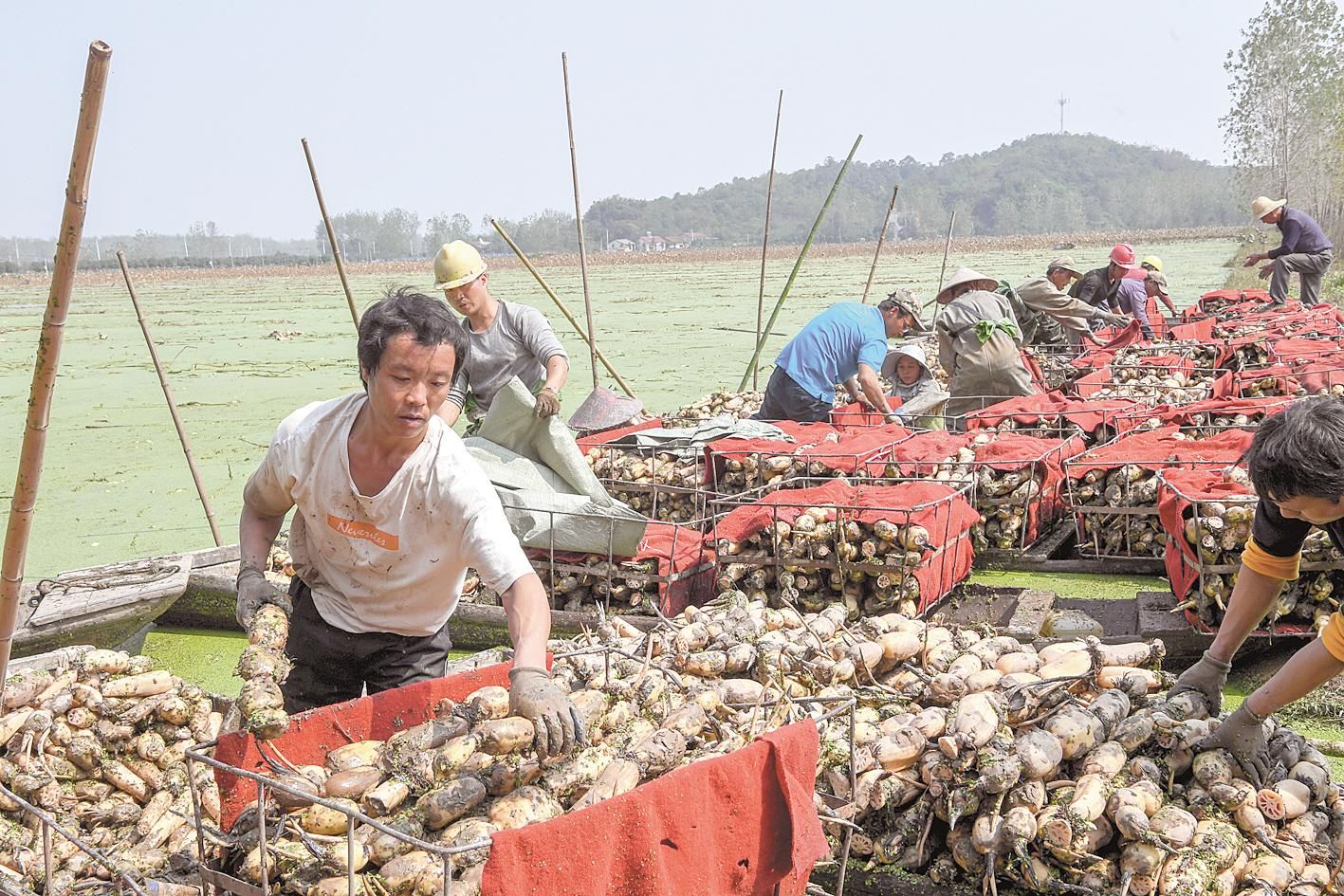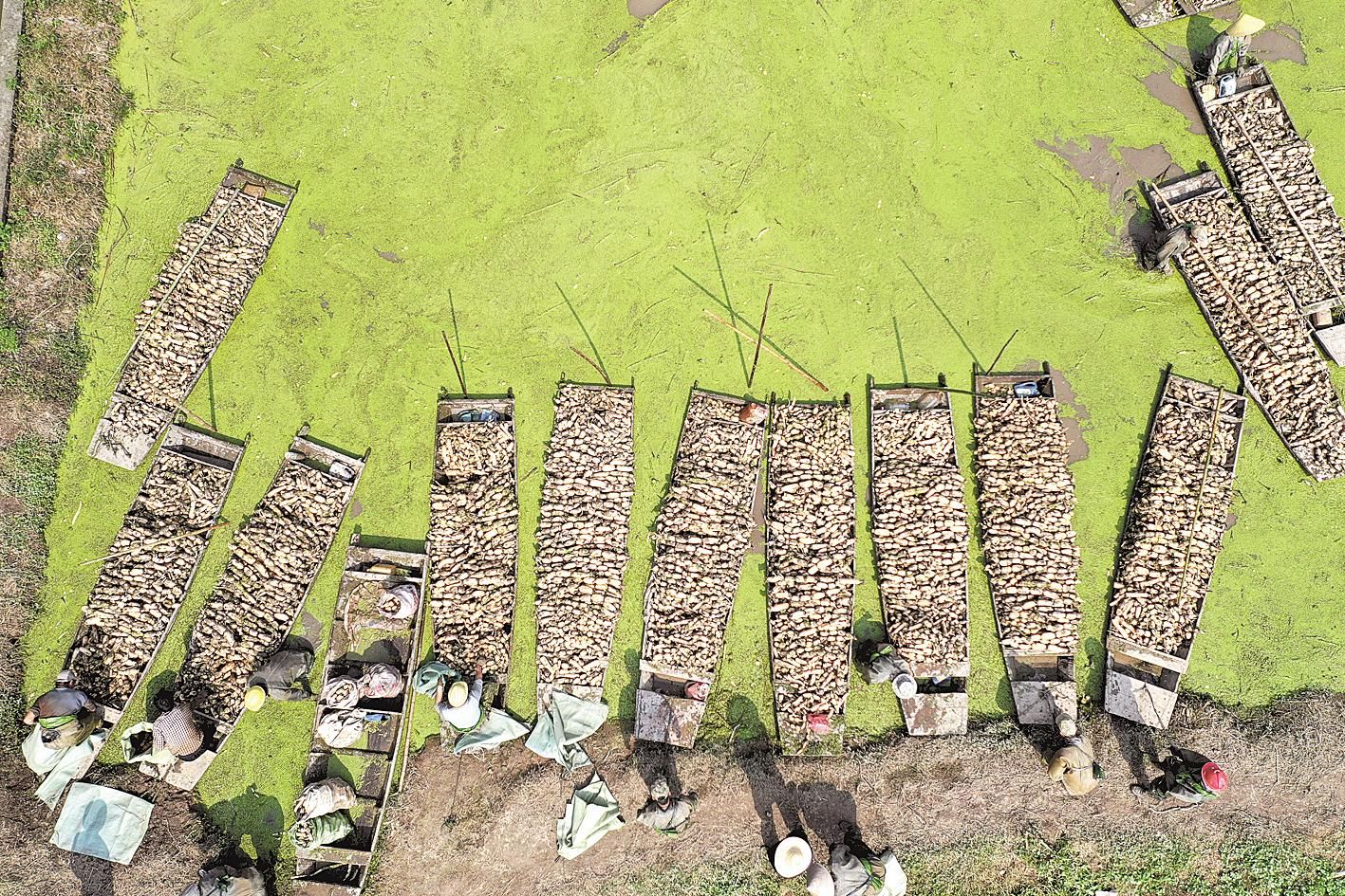 10月13日,嘉魚縣陸溪鎮(zhèn)農民趁著晴好天氣挖藕。這些蓮藕經嘉魚鴻富農產品有限公司加工后,將出口至東南亞和北美等地區(qū)。嘉魚縣蓮藕、蓮子、藕帶是區(qū)域特色明顯的優(yōu)勢農產品。近年來,嘉魚縣把發(fā)展蓮藕作為調整農業(yè)產業(yè)結構、增加農民收入的重要途徑。目前,全縣蓮藕種植面積4.85萬畝,2019年全縣蓮藕產業(yè)實現綜合產值5.6億元。