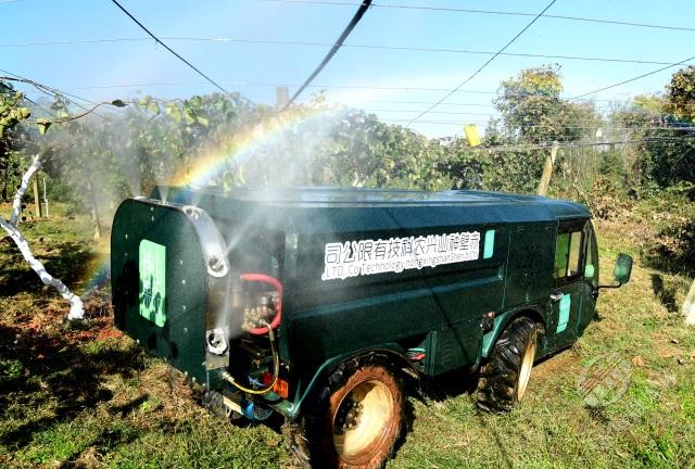 “一輛植保車輕輕松松一小時噴灑作業(yè)可以達(dá)到25畝以上,這是人工一天‘拉了瓦’也到達(dá)不了的的作業(yè)量。”11月12日,在神山興農(nóng)公司位于官塘驛鎮(zhèn)御屏山村的半島獼猴桃基地,熊堃坐進(jìn)1.5米身高的袖珍新能源植保車,拉動手閘,轉(zhuǎn)動方向盤,一番操作后,通過7條噴孔噴出的霧狀藥液在陽光下形成一道彩虹。