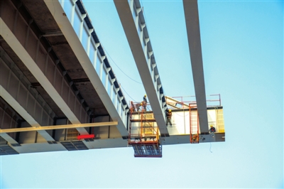 該橋南岸灘橋最后一孔50米的現(xiàn)澆箱梁已施工完畢。主跨橋梁也在不斷的實現(xiàn)合龍,目前合龍距離還剩76米。預計今年三月底實現(xiàn)合龍。