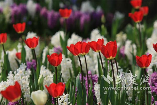 郁金香、風信子、洋水仙、大花蔥……春日里最色彩斑斕的球根花卉家族,也到了綻放風姿的好時候。武漢植物園通過多種球根花卉混播的手法,打造球根花田、花徑、花帶。60萬株球根花卉已經(jīng)開放三成,在武漢植物園中心草坪、菊花圃、湖岸帶等地斑斕盡放,與園區(qū)的奇花異草、高大的喬木、蜿蜒的小徑、青翠的草坪、幽靜的水域結合,構成一幅幅色彩繁茂的畫卷。