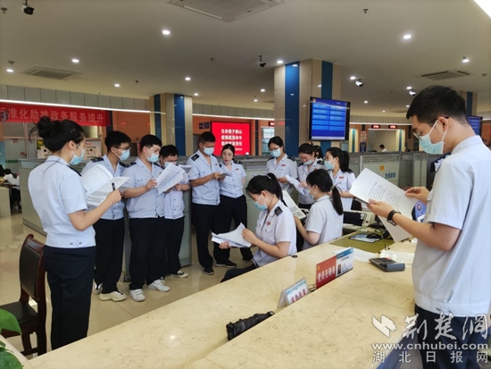 圖為稅務(wù)窗口人員利用午休時(shí)間開展“楚稅通”APP專項(xiàng)業(yè)務(wù)培訓(xùn)。(通訊員 供圖)
