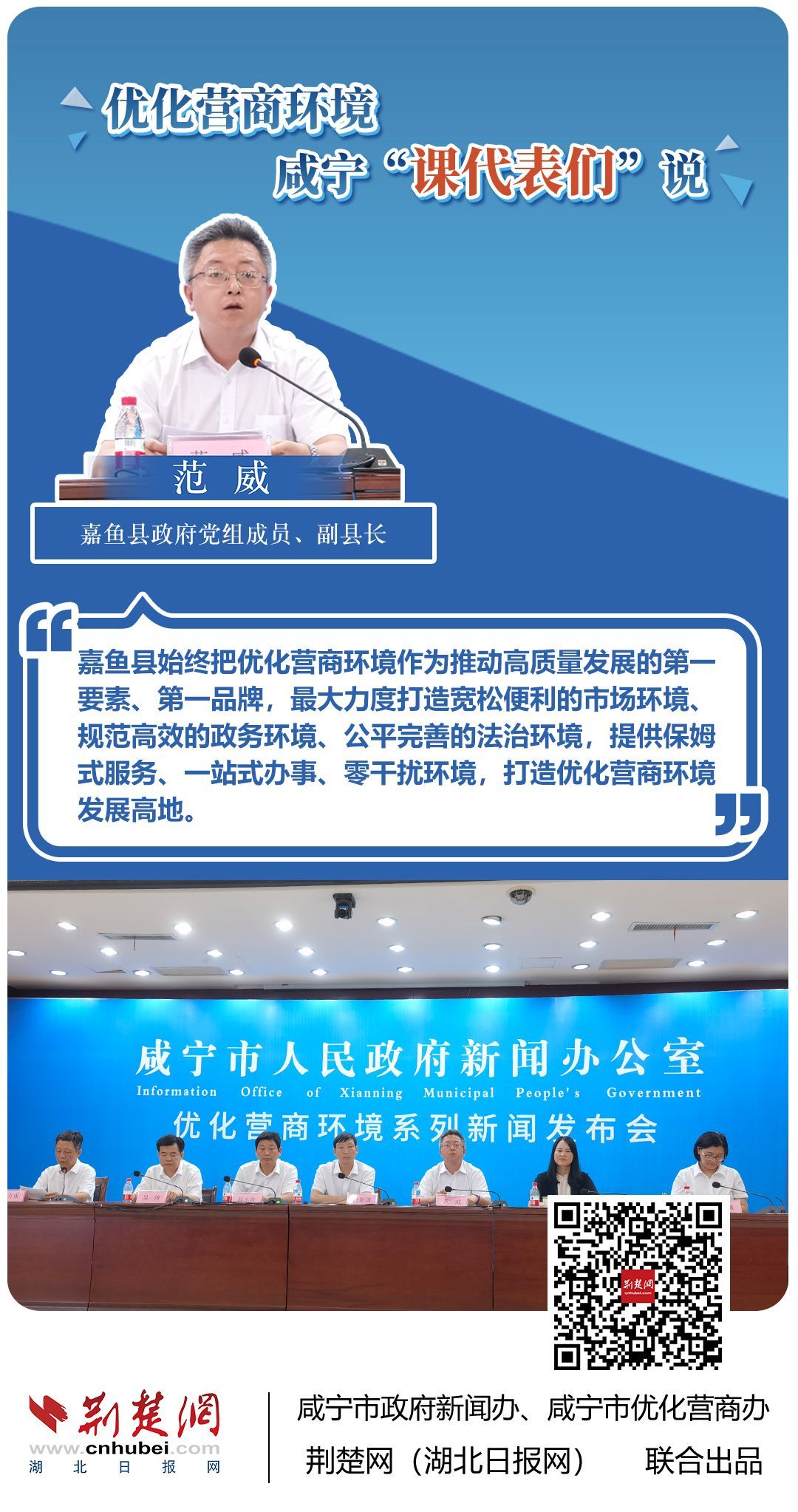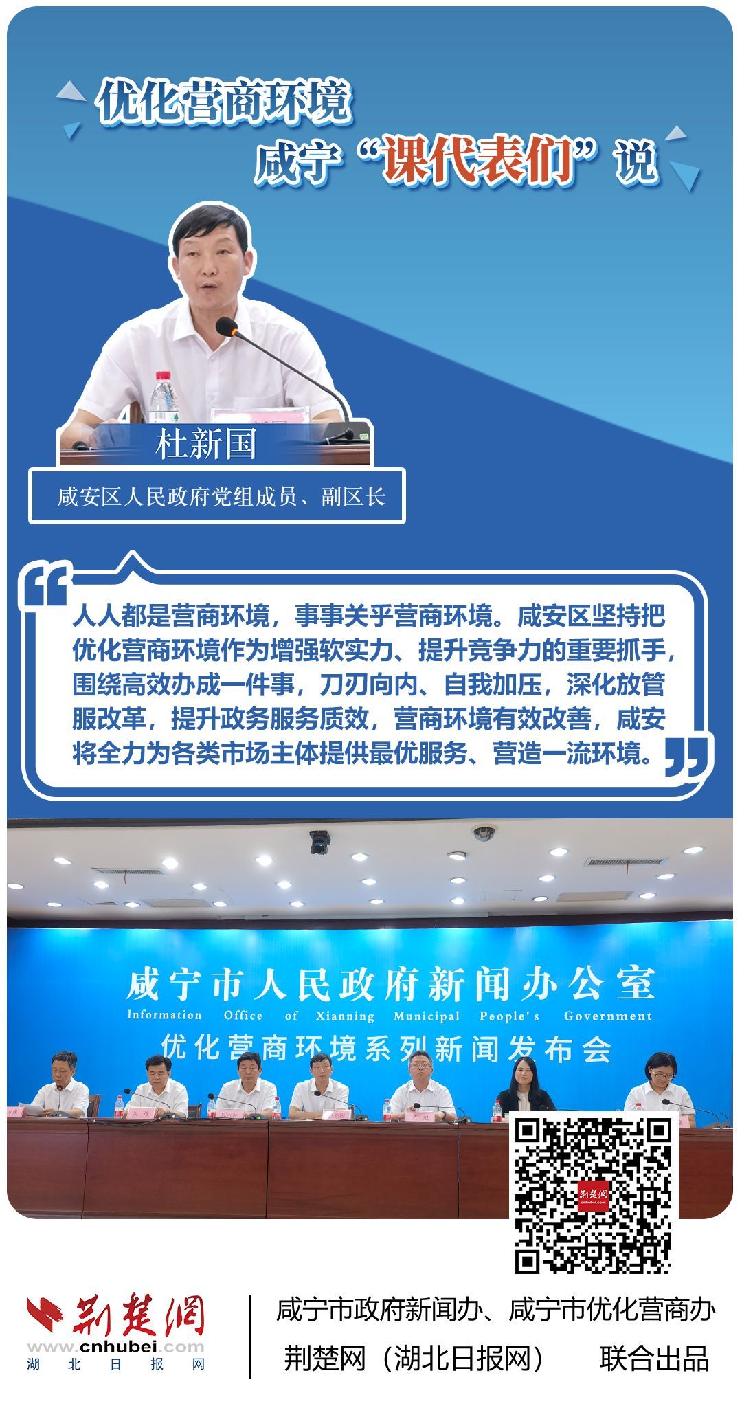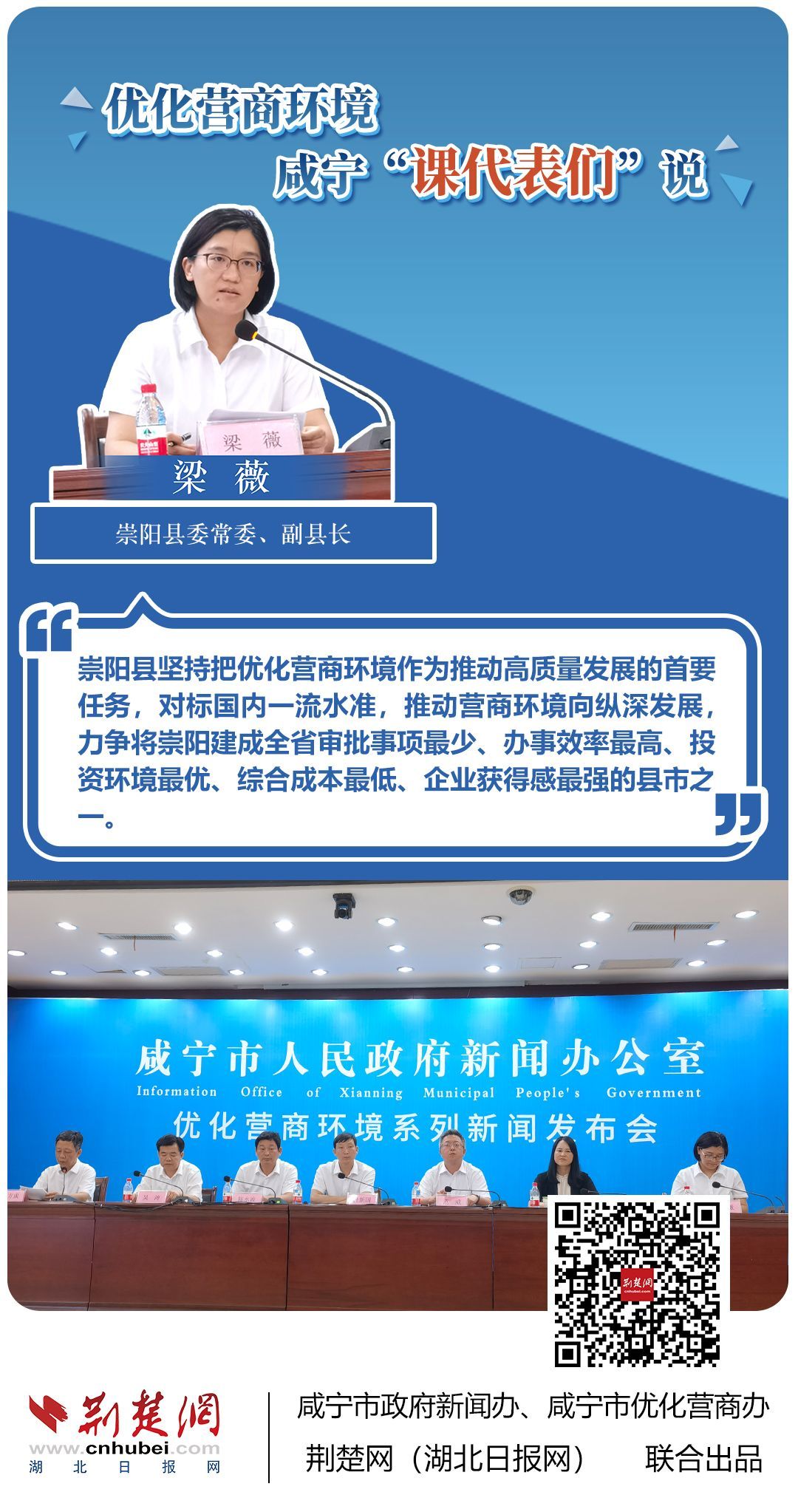 荊楚網(wǎng)(湖北日報網(wǎng))訊(記者 田城 通訊員 孫方成 張永紅)跨省通辦、“零干擾環(huán)境”、最簡流程優(yōu)服務、深化“放管服”改革、整肅行風政風……7月20日下午,咸寧市召開優(yōu)化營商環(huán)境新聞發(fā)布會。會上,咸安區(qū)、嘉魚縣、赤壁市、通城縣、崇陽縣、通山縣6個縣市區(qū)優(yōu)化營商環(huán)境發(fā)言人亮相,全面介紹當?shù)貎?yōu)化營商環(huán)境有關(guān)情況,持續(xù)推進咸寧市營商環(huán)境朝著更優(yōu)、更好方向前進。