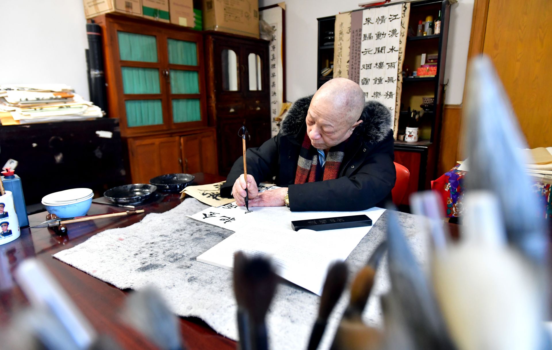 他愛書法,喜歡寫毛澤東詩詞,寫黨的重要理論、重要精神,并將這樣的紅色書法作品贈與青年黨員、年輕干部,督促勉勵他們加強(qiáng)學(xué)習(xí),時刻將黨和人民牢記心中。