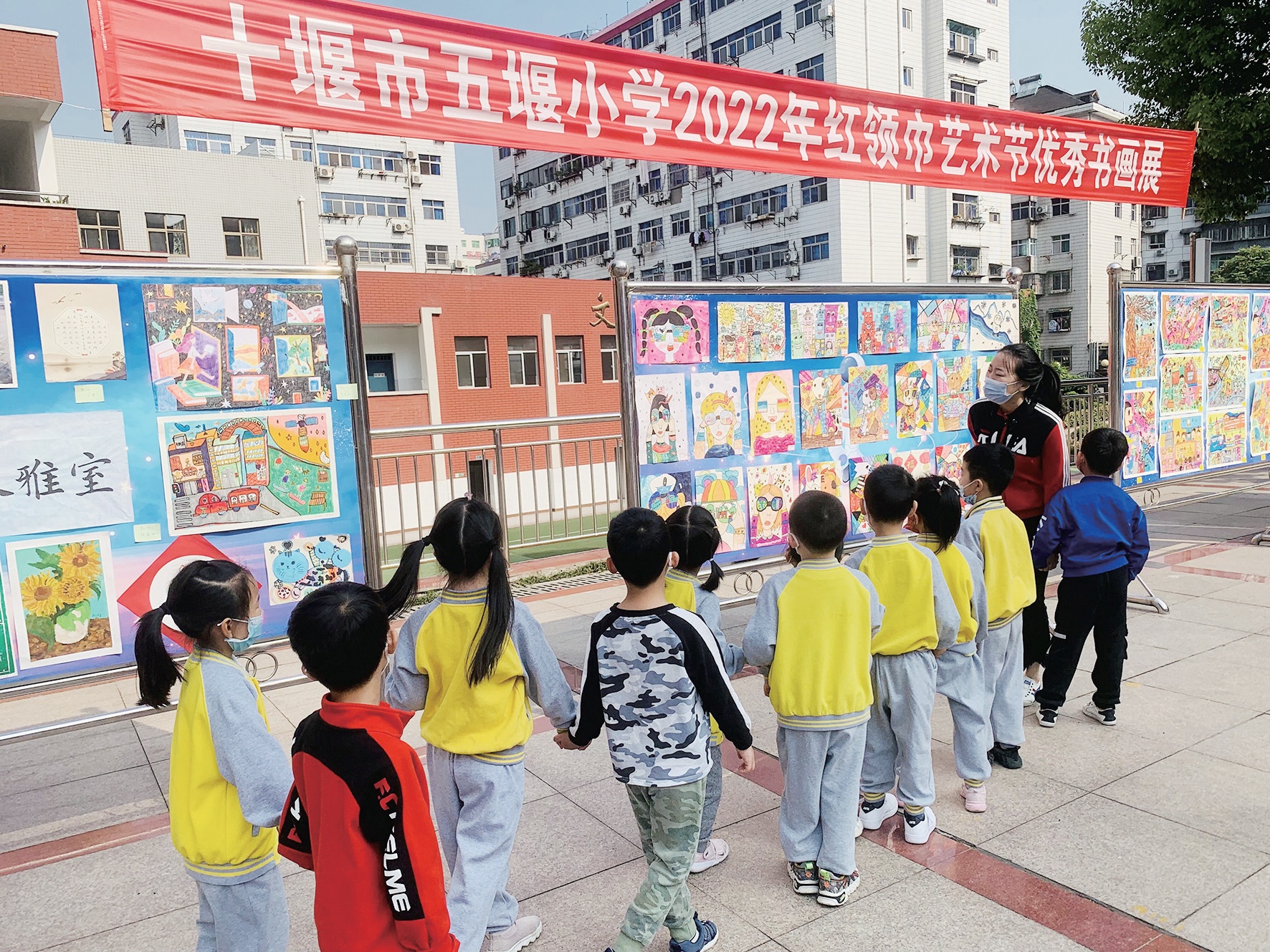 幼兒園大班孩子參觀小學校園。