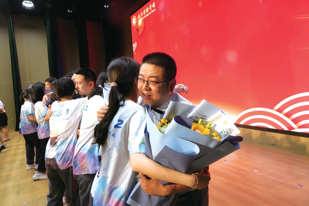 6月17日,漢江實驗學(xué)校舉行“傳承榮光·感恩母?!?022屆九年級畢業(yè)典禮,為即將參加中考的學(xué)子們加油鼓勁。圖為學(xué)生與老師擁抱,表達感激之情。圖/通訊員 涂銀玥 鮑玉