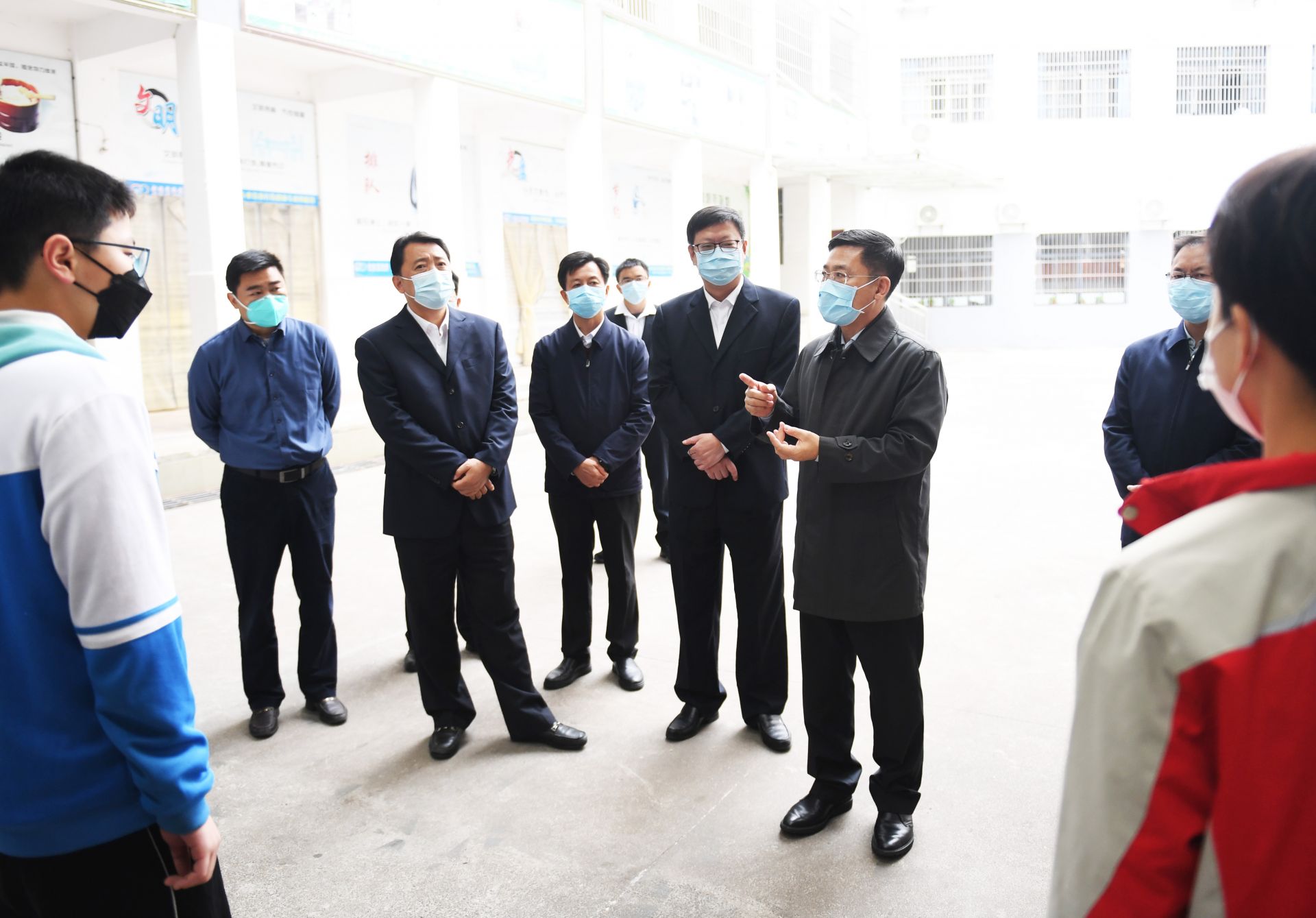因前期篩查發(fā)現(xiàn)有陽性病例活動(dòng)軌跡,崇陽縣眾望高中實(shí)行靜默管理,部分師生在校園內(nèi)接受健康監(jiān)測(cè),他們的身體情況、生活保障和心理狀況牽掛著市領(lǐng)導(dǎo)的心。孟祥偉、楊軍來到學(xué)生宿舍樓下,在采取戴口罩、間隔一米等必要防護(hù)措施后,和被監(jiān)測(cè)學(xué)生、老師親切交流,詳細(xì)了解監(jiān)測(cè)措施落實(shí)、日常飲食及營(yíng)養(yǎng)保障、心理疏導(dǎo)等情況。