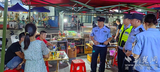 白霓派出所民警輔警在燒烤攤開(kāi)展安全隱患排查工作。通訊員 供圖