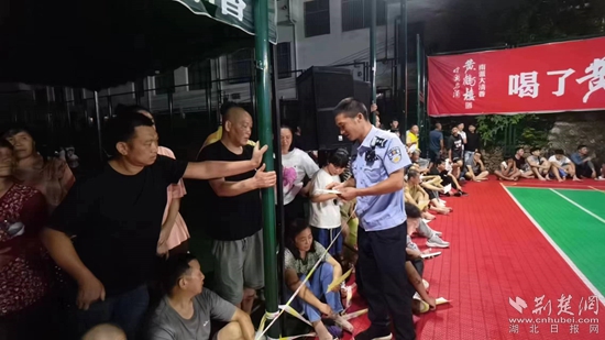 “當(dāng)今社會(huì),電信網(wǎng)絡(luò)詐騙‘花樣百出’,騙術(shù)層出不窮,不明鏈接千萬(wàn)別點(diǎn)開(kāi),小利誘惑一定要警惕……”8月13日晚,在銅鐘鄉(xiāng)“村BA”籃球賽現(xiàn)場(chǎng),銅鐘派出所民輔警利用中場(chǎng)休息時(shí)間耐心地給現(xiàn)場(chǎng)觀賽群眾講解防詐騙知識(shí)。