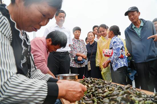 荊楚網(wǎng)(湖北日報(bào)網(wǎng))訊(通訊員吳同海 余小海)“螺螄港加油...”“先裝大紅薯啊,別管小的,小的不重稱?!?月21日上午,以“慶豐收 促和美”為主題的湖北·蘄春2023年中國農(nóng)民豐收節(jié),在彭思鎮(zhèn)鳳凰村火熱開展,千余名當(dāng)?shù)卮迕窈屯獾赜慰凸餐窒碡S收的成果和喜悅。
