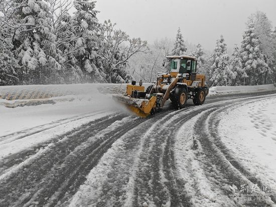 在各重點路段,工作人員迅速設置提示牌,并及時砍伐被積雪壓倒的楠竹等樹木。此外,還通過人工鏟雪、機械撒工業(yè)鹽等措施,爭取在最短的時間內(nèi)搶通受冰雪影響的道路。