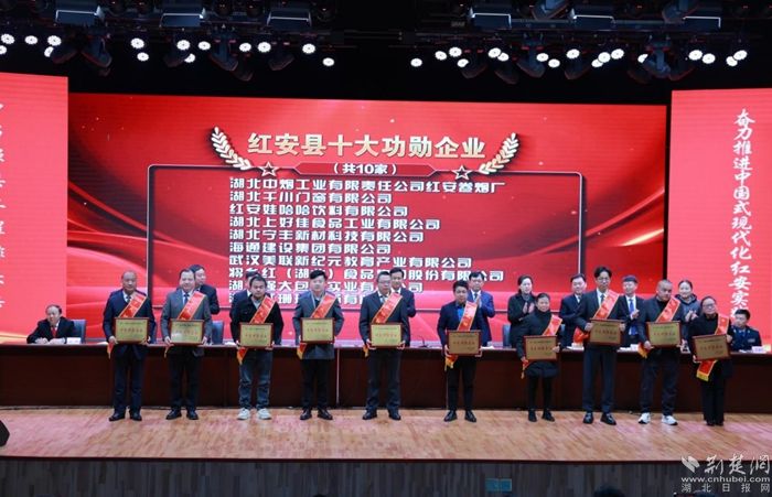“一花興一業(yè),一企帶百企。助力建筑業(yè)成為紅安乃至黃岡首個產(chǎn)值過200億元的支柱產(chǎn)業(yè)。”當(dāng)天上午,海通建設(shè)集團(tuán)有限公司榮獲紅安縣十大功勛企業(yè)。該公司負(fù)責(zé)人李櫟戴著紅綬帶,上臺接受表彰,開心喜悅之情洋溢在他臉上。
