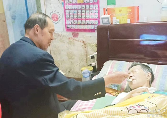 尤國才,男,漢族,1948年9月生,中共黨員,黃岡市黃梅縣孔壟鎮(zhèn)張?zhí)链?組村民。1995年,妻子不幸患上帕金森癥,耗盡全部積蓄四處求醫(yī),他無怨無悔;每日兩次活絡(luò)按摩,他從不間斷;照料臥床妻子擦身護(hù)理,他任勞任怨。27年來,守護(hù)患病妻子、養(yǎng)育年幼兒女,尤國才先后榮獲“黃岡最美退役軍人”“黃梅縣第六屆道德模范”“黃岡好人”等榮譽(yù)稱號(hào)。