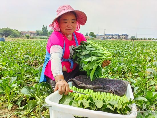 在黃梅縣分路鎮(zhèn)鼎旺農(nóng)業(yè)農(nóng)民專業(yè)合作社廣東菜心種植基地,近100名割菜工手戴指甲刀,在技術(shù)顧問呂美標(biāo)的指揮下,分散到各個(gè)地塊,不一會(huì)兒,路兩旁就整齊堆滿了菜心,合作社社長石成旺拿出手機(jī)聯(lián)系車輛,經(jīng)過整理、清洗,剛收割的菜心就被送到凍庫,準(zhǔn)備第二天運(yùn)往國內(nèi)外。