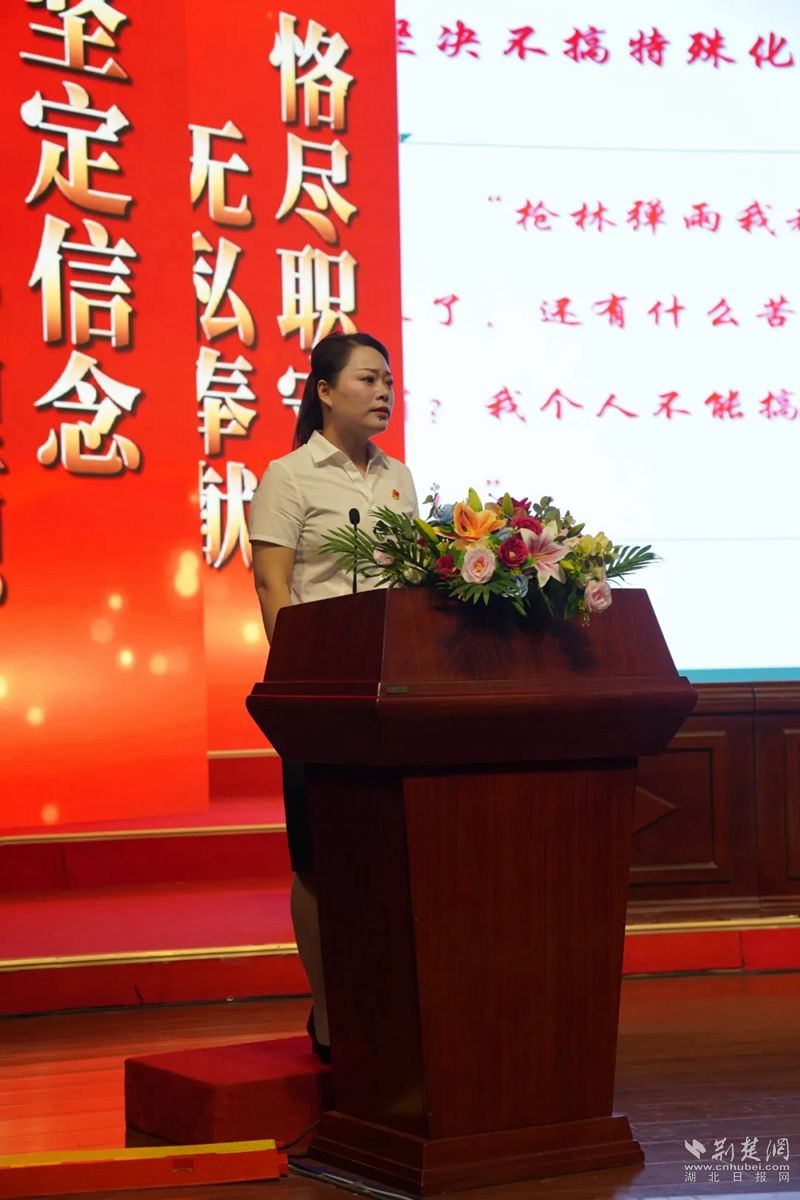 鄂城區(qū)西山街道寒溪社區(qū)黨委書記肖葉宣講。