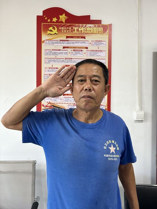 只是,他身上那件藍(lán)色的“對(duì)越作戰(zhàn)44周年紀(jì)念”T恤,似乎在無聲提醒著老兵言不由衷的心事。