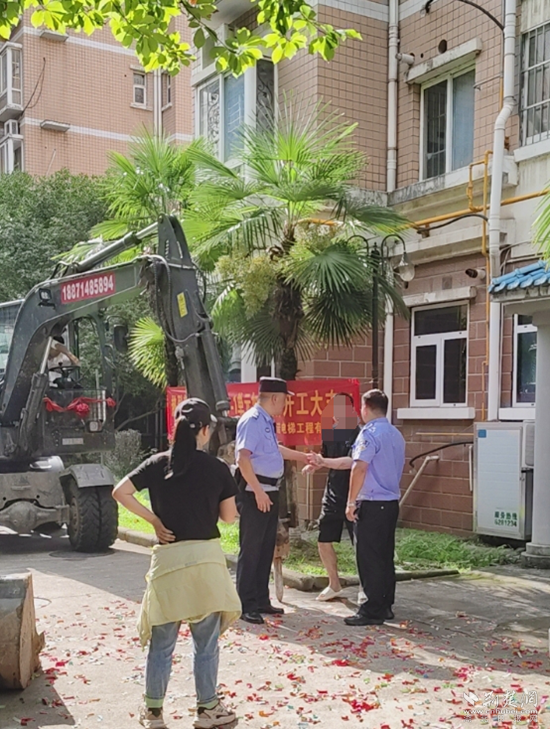 當(dāng)天上午,正當(dāng)黃石天方小區(qū)某單元住戶們慶祝加裝電梯開工大吉之時(shí),該單元一樓住戶盧某跳了出來,以對(duì)補(bǔ)償不滿意等為由,大鬧施工現(xiàn)場(chǎng)。社區(qū)工作人員、居民雖多次上前勸阻,但盧某均不予理會(huì)。萬般無奈之下,施工方只得報(bào)警求助。民警現(xiàn)場(chǎng)了解情況后,將盧某帶離施工現(xiàn)場(chǎng),并進(jìn)行了法律教育和宣傳引導(dǎo)。